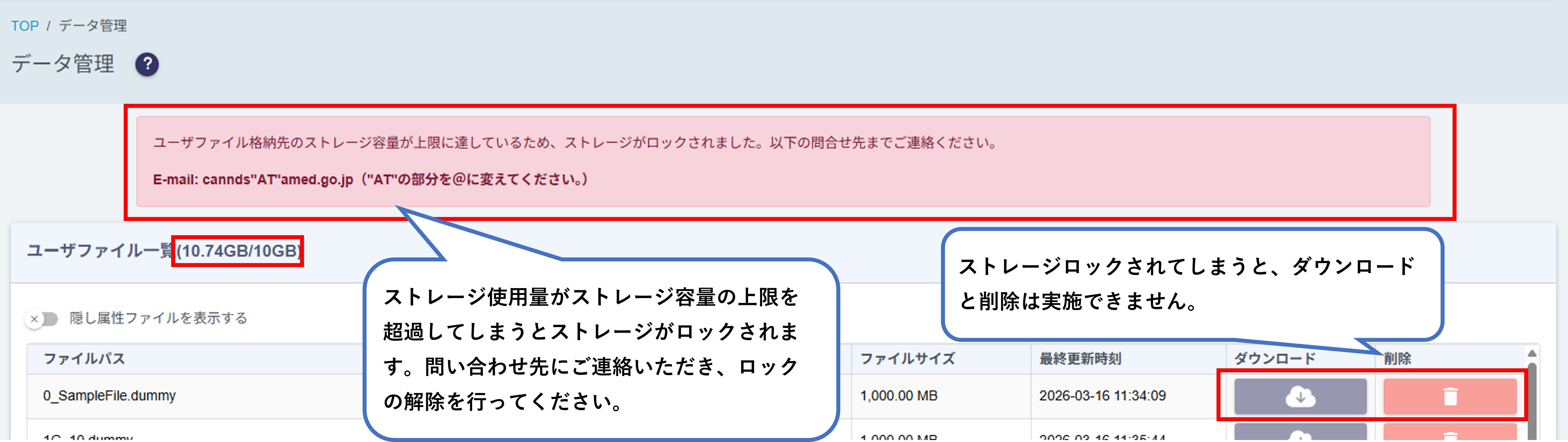 「【CANNDs】10GBの上限を超過したため、ストレージがロックされました【制限通知】」